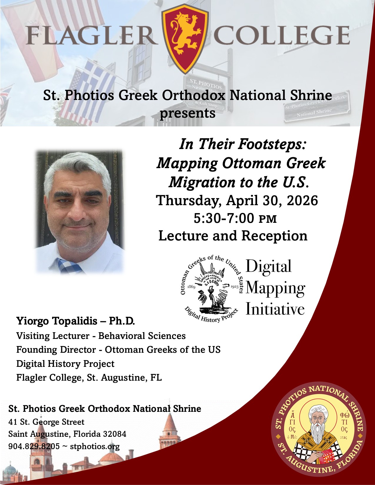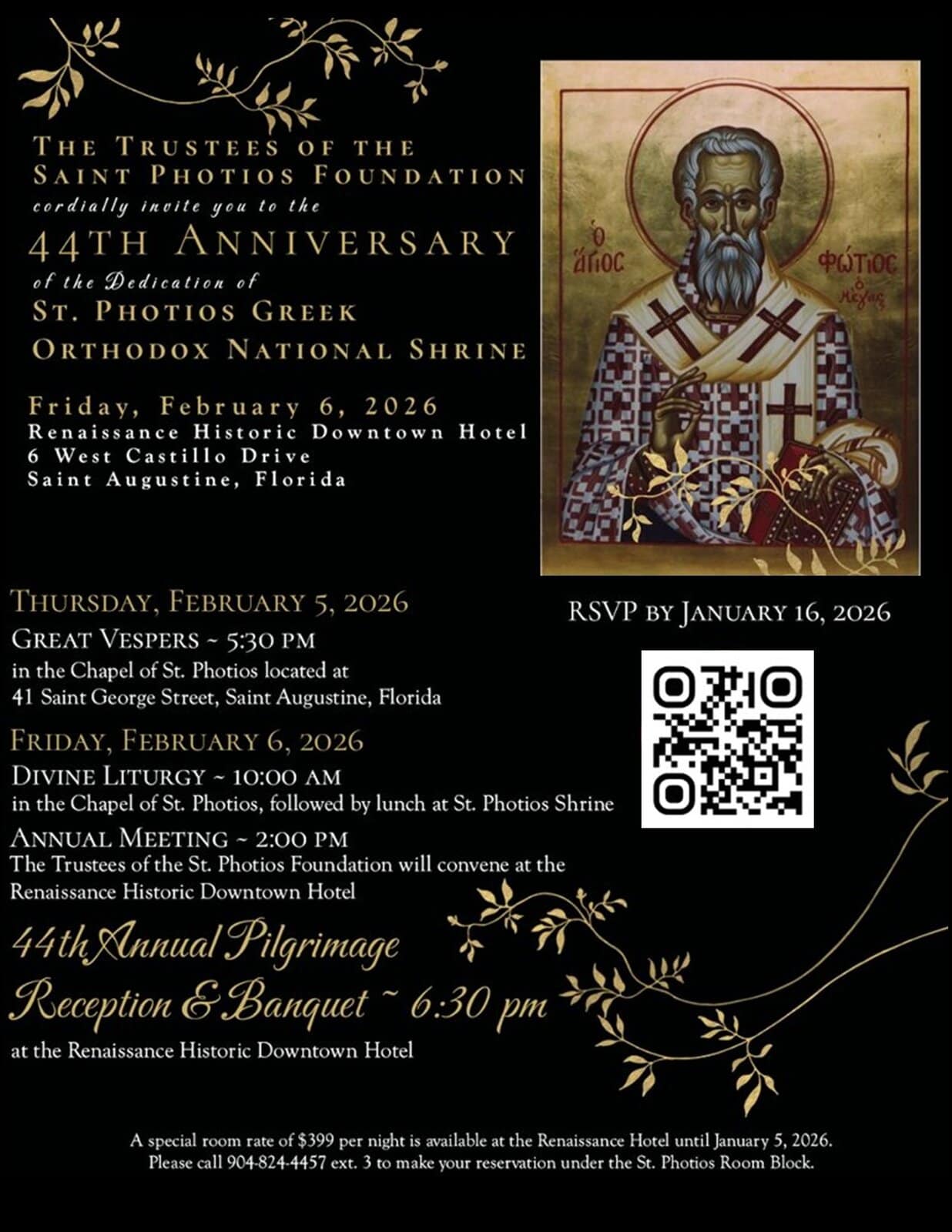 Just steps from St. Augustine’s historic city gates at St. George Street, the St. Photios Greek Orthodox National Shrine, an institution of the Greek Orthodox Archdiocese of America, is dedicated to the first colony of Greek people who came to America in 1768. The Shrine consists of exhibits depicting the life of early Greeks in America and the development of the Greek Orthodox Church in America, and the St. Photios Chapel.